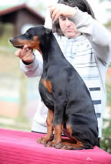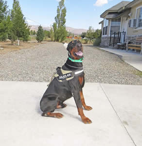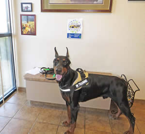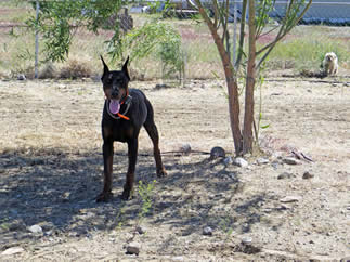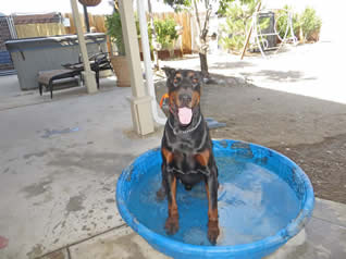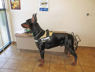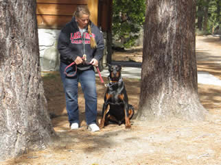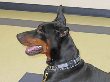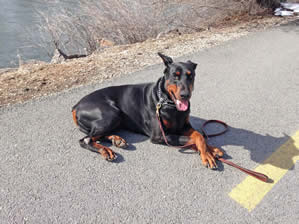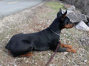 Nixon is in obedience training and has earned his AKC Good Canine Citizenship award. Nixon is goofy, silly, non aggressive when meeting strangers in a friendly manner for a Doberman Pinscher. His skills continue to be evaluated while in obedience. He knows all his basic commands and in German as well.