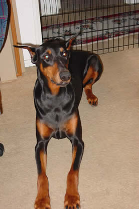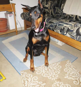 Health: Xena's x-rays on hips and elbows rated OFA: Excellent, DNA Vwd: carrier, DNA DCM: pos1 hetro, thyroid normal. Xena completed 2 Echo cardio she developed heart murmur age 8 1/2 and news is good from Echo 2015/2017 - no changes. In June 2015 - developed 'bloat' symptoms, rushed to hospital where she recovered, 100% normal, no damage to internal organs or tissues. Again, bloat symptoms Jan. 2016, and recieved surgery, prognosis/excellent. Xena has been in has been in excellent health with her last full medical exam Dec. 6, 2017. On Monday December 11, 2017 around 3 or 4pm, Xena was unresponsive and passed away suddenly. She was 11 years and 7 months of age. She lived a full life and was my cherrished Dobeman I could ever ask for. She is gone now and greatly missed as I publish this page.